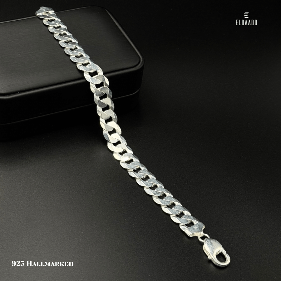 This bold curb bracelet is crafted from pure 925 Italian sterling silver, designed for men who prefer a strong and masculine style. With a substantial weight of 28.5 grams and an 8.5-inch length, it delivers both comfort and a premium solid feel. The polished curb links create a timeless design, making it a standout piece for daily wear or special occasions.