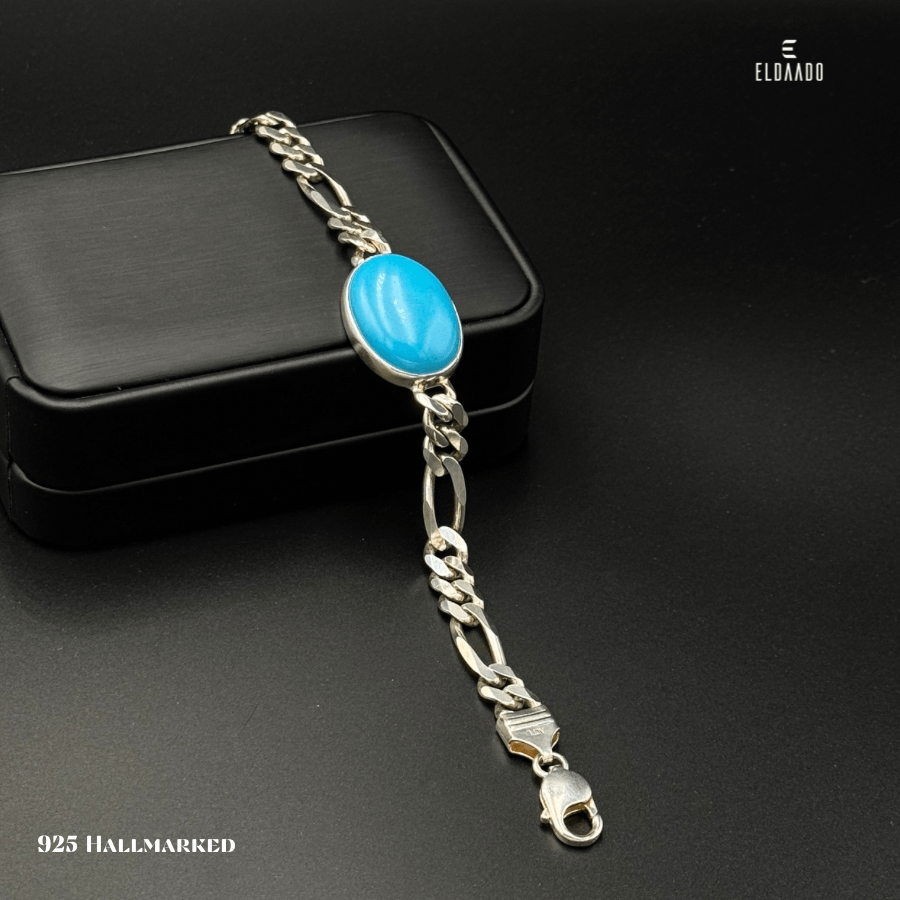 Make a bold statement with this 925 Silver Salman Khan Bracelet for Men, featuring a striking blue stone accent. Crafted from premium sterling silver, this bracelet combines luxury, durability, and iconic style inspired by Salman Khan. The Figaro chain design adds sophistication while ensuring a comfortable fit. Measuring 8.5 inches in length and weighing 27.1 grams, it offers a substantial yet wearable accessory perfect for daily wear or special occasions. Italian craftsmanship guarantees a polished finish and lasting elegance, making it a standout piece in any man’s jewelry collection.