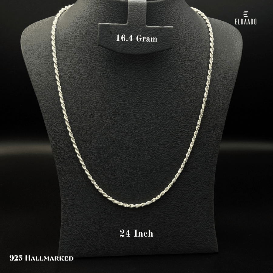 Add timeless elegance to your look with this 925 Italian Silver Rope Chain for Men, designed with a twisted rope pattern that combines strength and style. Measuring 24 inches in length, this classic chain is versatile enough for both everyday wear and special occasions. Crafted in pure 925 Italian silver, it delivers durability, shine, and sophistication.