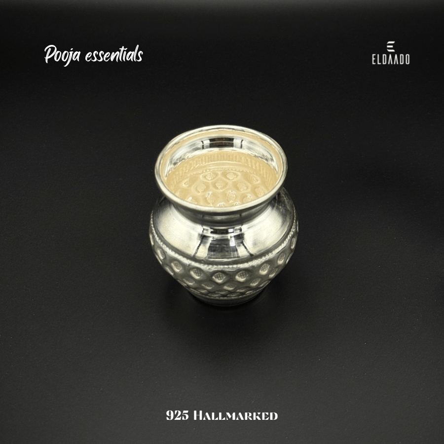Crafted from 925 pure silver, this traditional Kalash is a symbol of purity, prosperity, and divine grace. A must-have for auspicious rituals, weddings, festivals, and poojas.