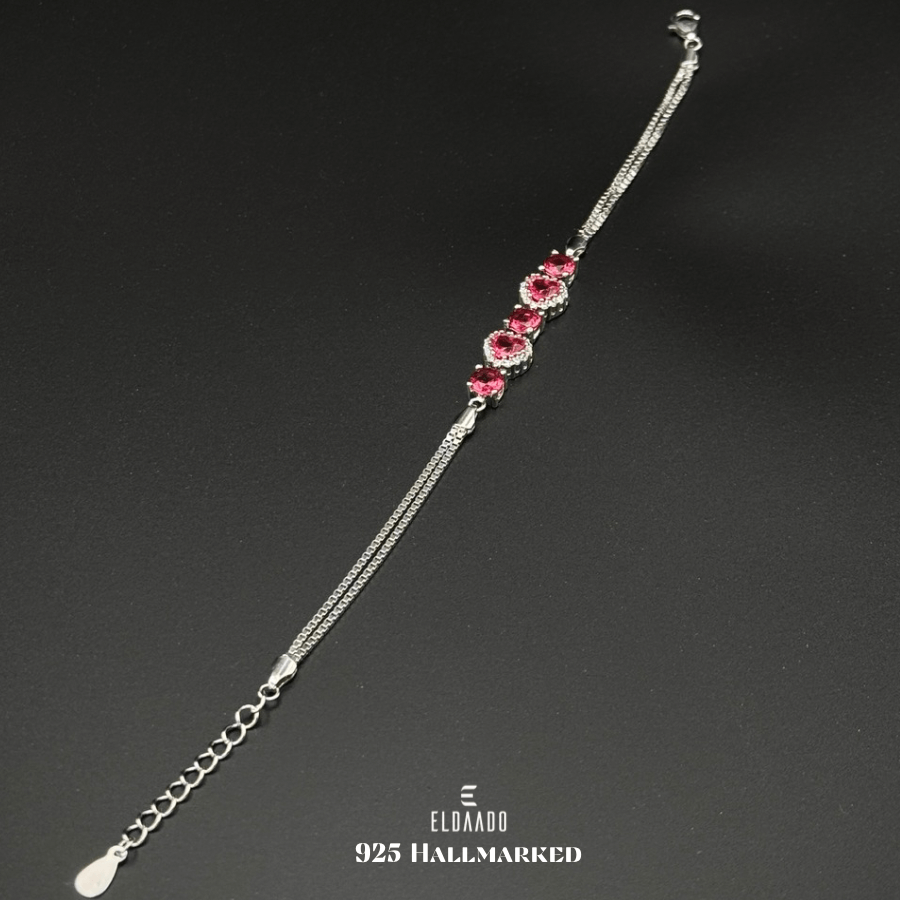 Enhance your elegance with this 925 Italian Sterling Silver Ruby Red Zircon Stone Bracelet for Women,