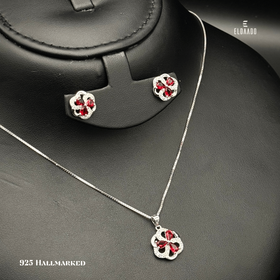 Bring luck and elegance to your style with this 925 Italian Silver 3 Leaf Clover Jewelry Set for Women, featuring a beautifully crafted pendant necklace and matching earrings. Adorned with sparkling Ruby Red color zircon stone.