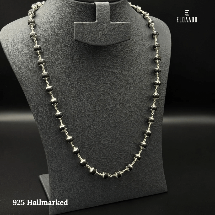 Karungali beads are known for their protective and strengthening properties, while silver adds a touch of purity and durability. This chain is a meaningful yet fashionable accessory for daily wear or gifting.
