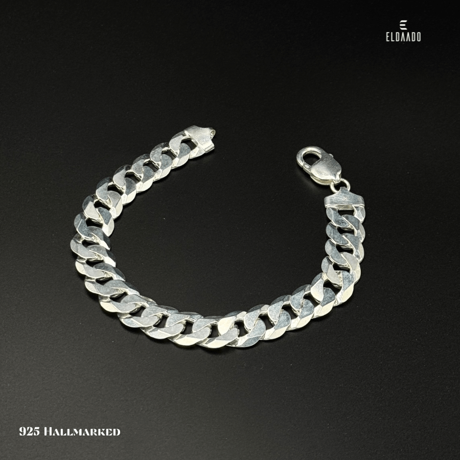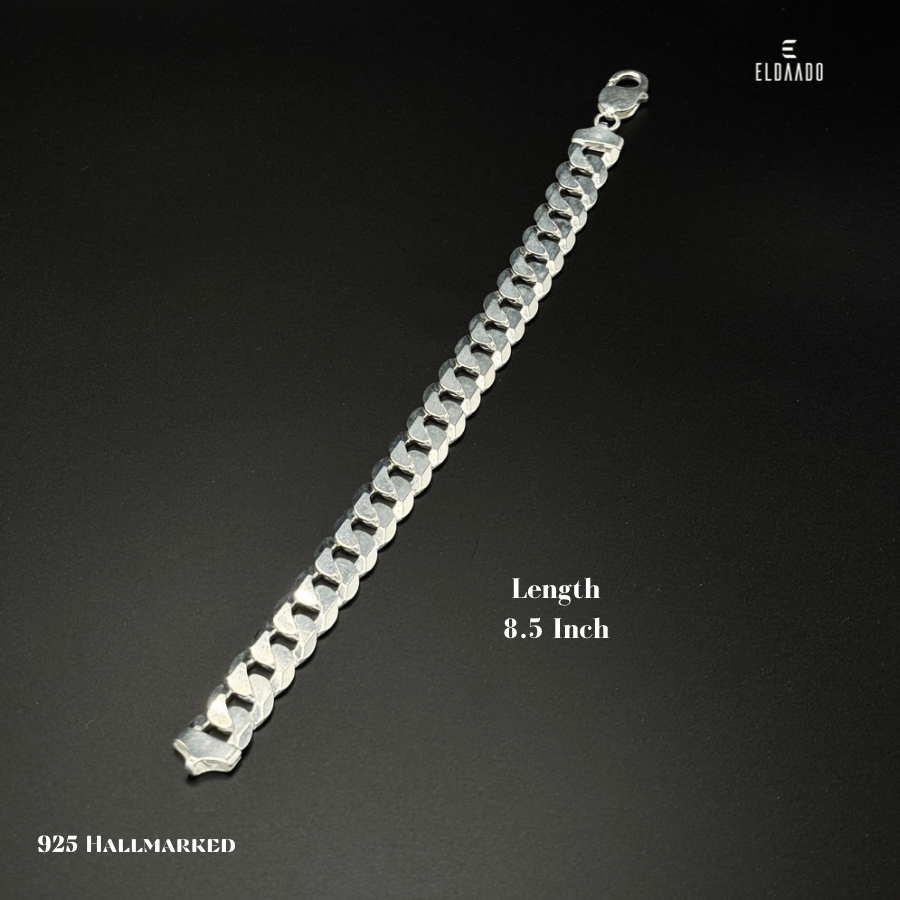 This bold curb bracelet is crafted from pure 925 Italian sterling silver, designed for men who prefer a strong and masculine style. With a substantial weight of 28.5 grams and an 8.5-inch length, it delivers both comfort and a premium solid feel. The polished curb links create a timeless design, making it a standout piece for daily wear or special occasions.