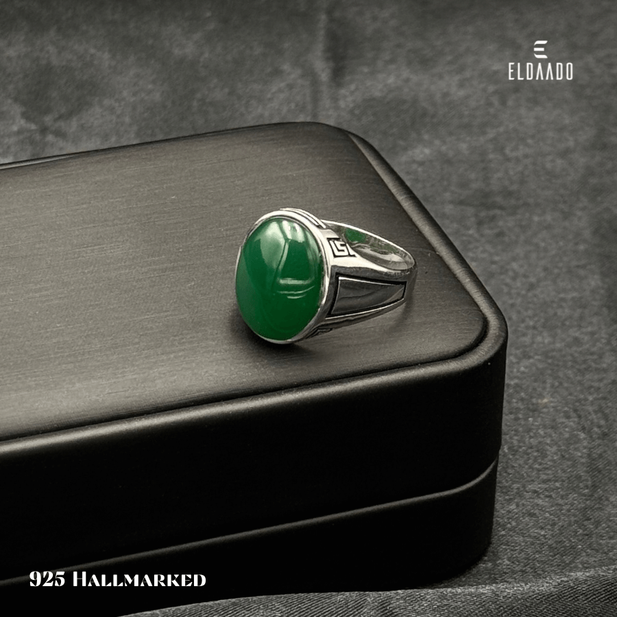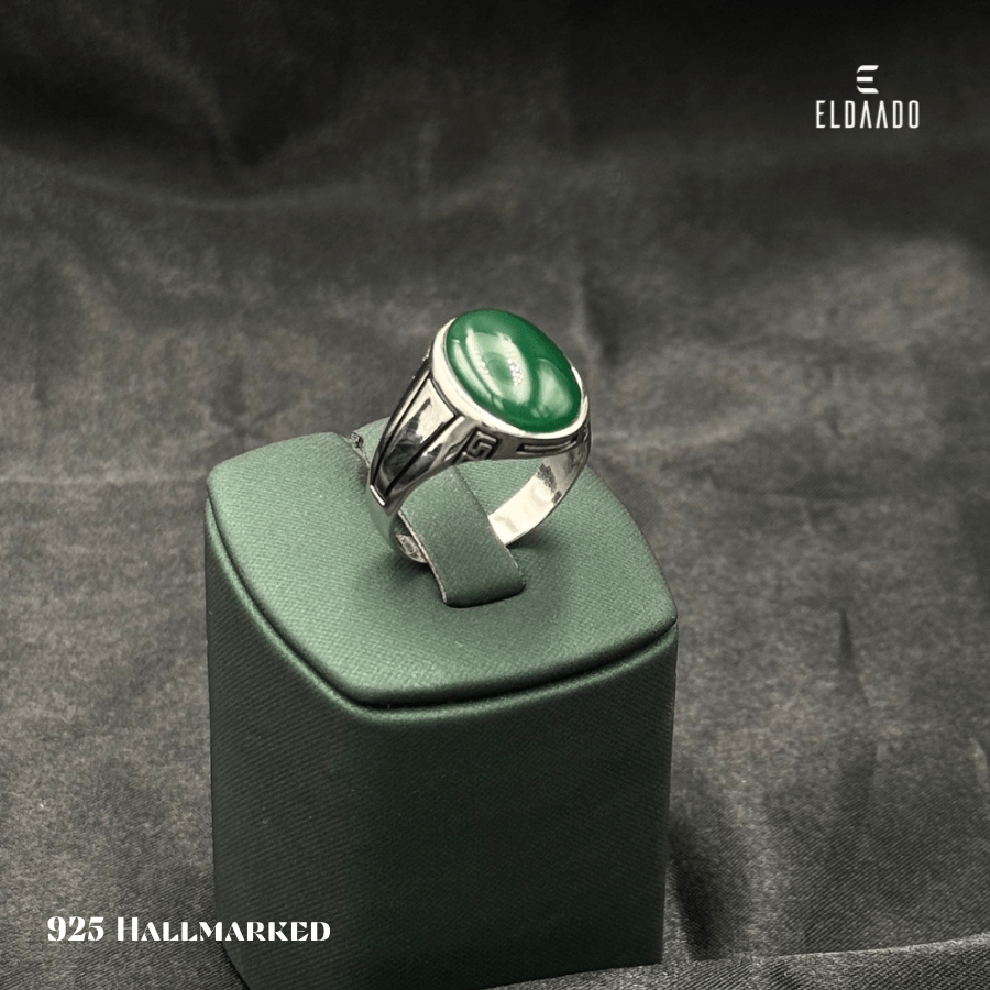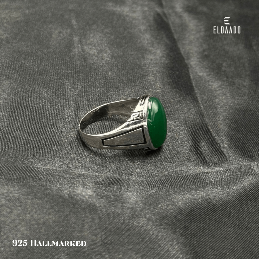 Elevate your look with this 925 Italian Silver Men's Ring, featuring a vibrant synthetic green onyx stone at the center and intricate enamel detailing on the sides. Expertly crafted for comfort and style, this ring blends modern design with classic elegance, making it perfect for daily wear or special occasions. A bold statement piece that complements any outfit.