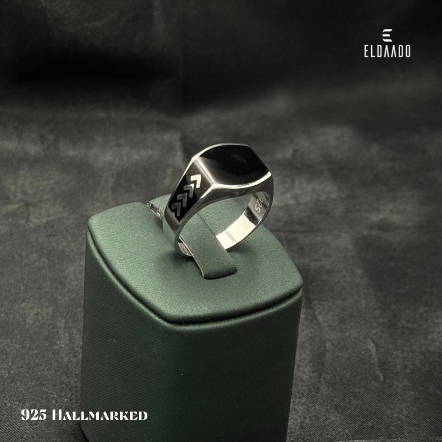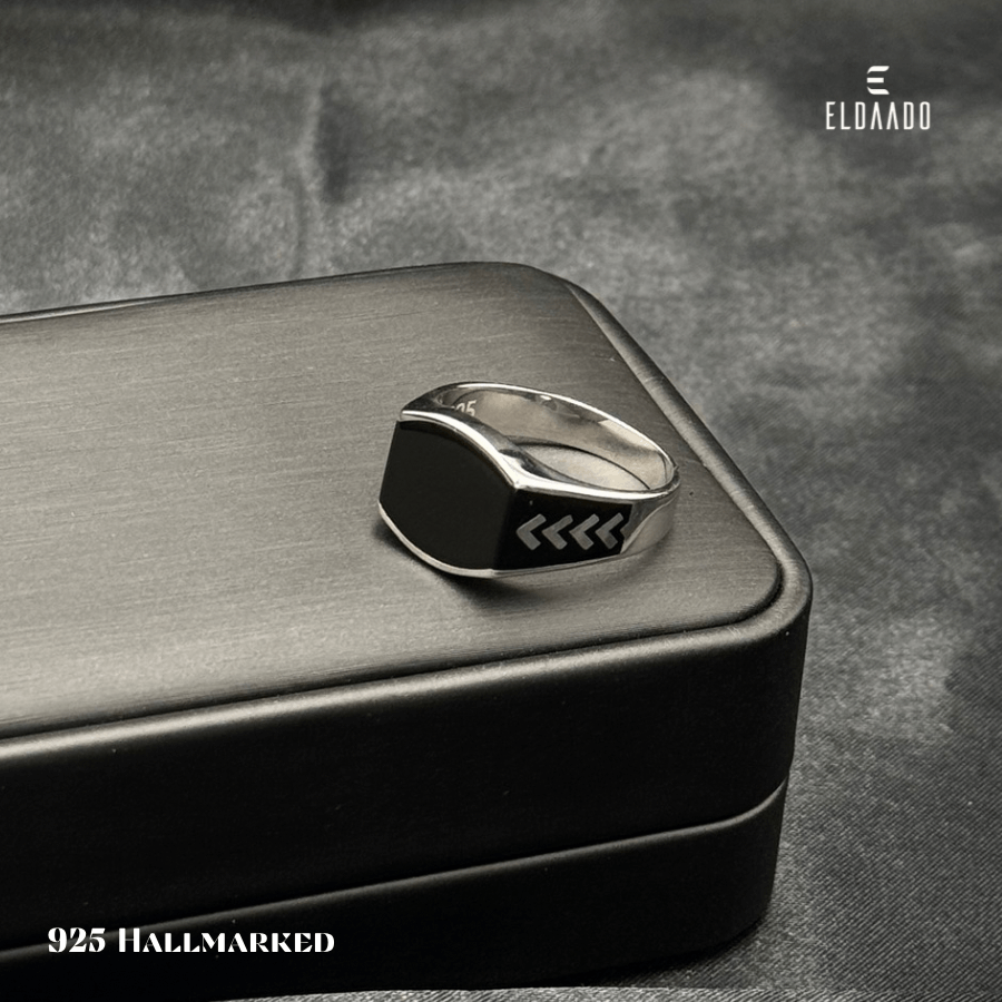 Showcase your bold style with this 925 Italian Silver Men’s Ring, highlighted by a sleek black enamel design. Handcrafted with precision, this ring combines Italian artistry with modern elegance. Its polished finish and durable sterling silver build make it a perfect everyday accessory as well as a refined piece for special occasions. Designed for comfort and sophistication, this ring is a timeless addition to any man’s collection.