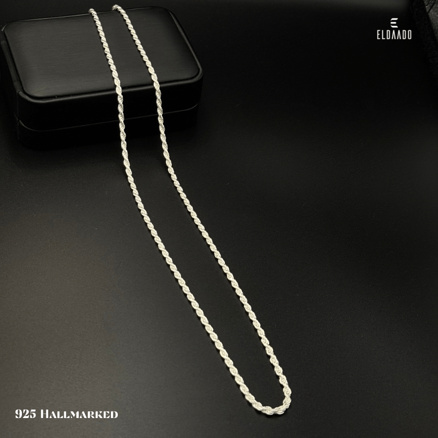 Add timeless elegance to your look with this 925 Italian Silver Rope Chain for Men, designed with a twisted rope pattern that combines strength and style. Measuring 24 inches in length, this classic chain is versatile enough for both everyday wear and special occasions. Crafted in pure 925 Italian silver, it delivers durability, shine, and sophistication.