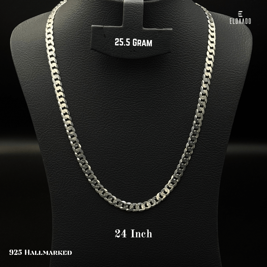 Upgrade your style with this 925 Italian Sterling Silver Curb Chain for Men in a 24 inch length. Designed with flat, polished links, this chain delivers a bold and masculine look while ensuring durability for everyday wear. Handcrafted from genuine Italian silver, it offers both luxury and strength, making it perfect to wear alone or with a pendant. A must-have silver chain necklace for men who value timeless design and premium quality.