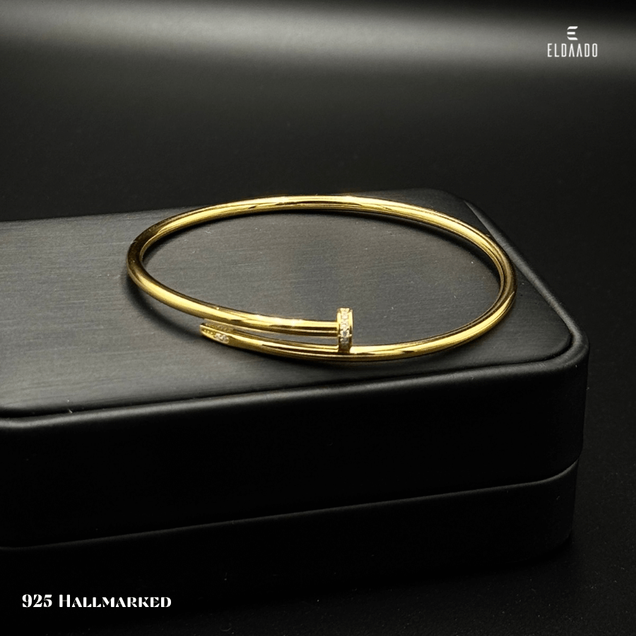 Add a luxurious shine to your jewelry collection with this 925 Italian Silver gold-plated nail bangle for women. Inspired by contemporary nail design, the open cuff features a rich gold-plated finish over premium sterling silver, creating a chic, modern look. Lightweight and comfortable, it’s a versatile piece perfect for casual outings, office wear, or glamorous events.