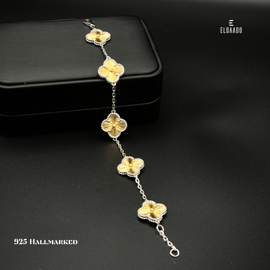 Elevate your style with this VCA-inspired bracelet, beautifully crafted in pure 925 Italian sterling silver. Designed for the modern woman, it blends classic elegance with designer flair — perfect for both everyday wear and special occasions.