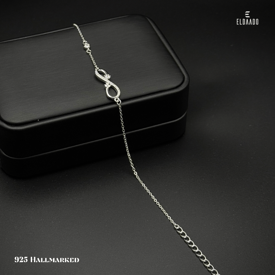 925 Silver Infinity Bracelet for Women, designed to symbolize eternal love, strength, and connection. The sleek infinity design makes it a meaningful accessory that adds sophistication to both casual and formal looks.