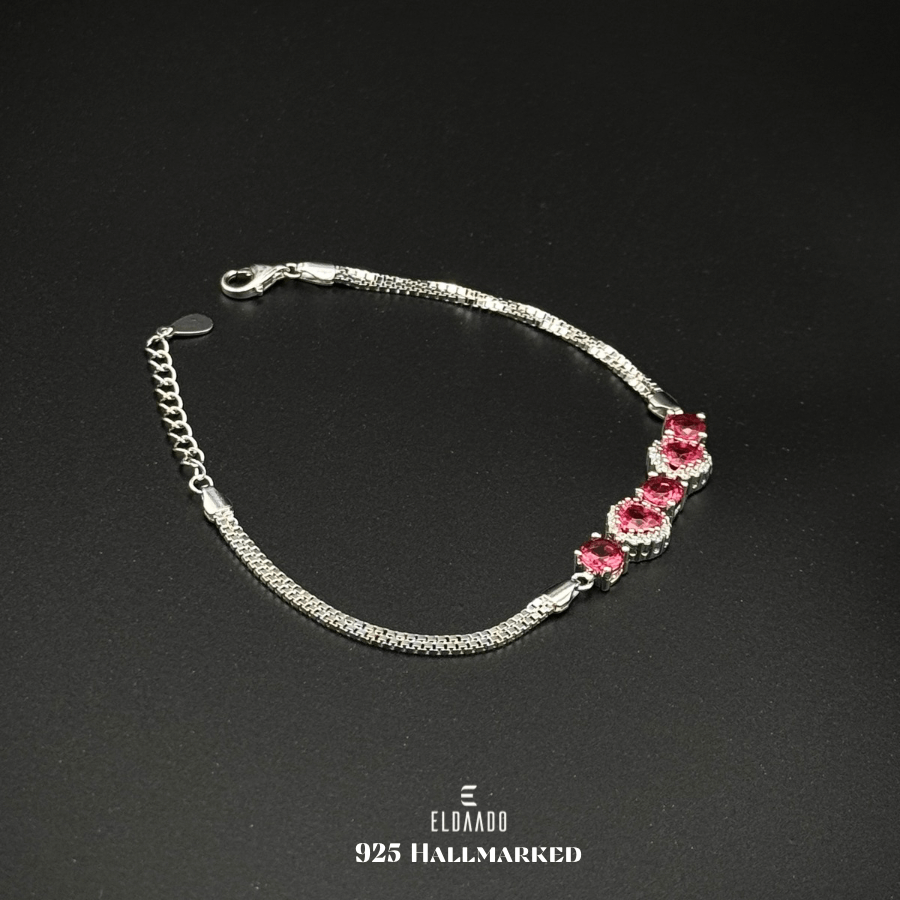 Enhance your elegance with this 925 Italian Sterling Silver Ruby Red Zircon Stone Bracelet for Women,
