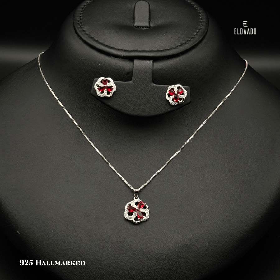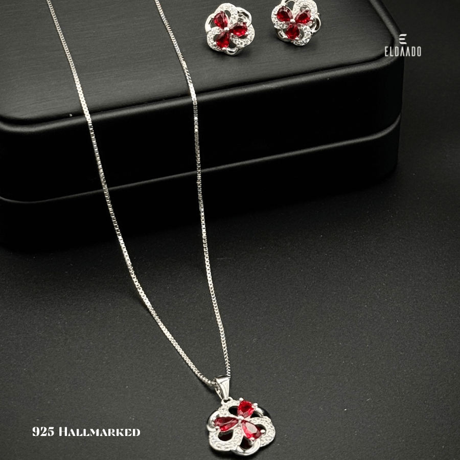 Bring luck and elegance to your style with this 925 Italian Silver 3 Leaf Clover Jewelry Set for Women, featuring a beautifully crafted pendant necklace and matching earrings. Adorned with sparkling Ruby Red color zircon stone.
