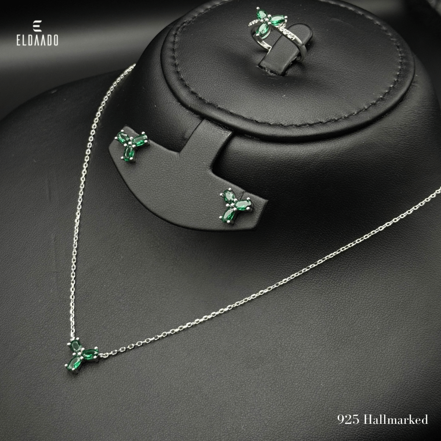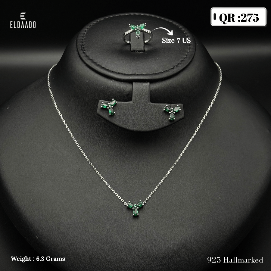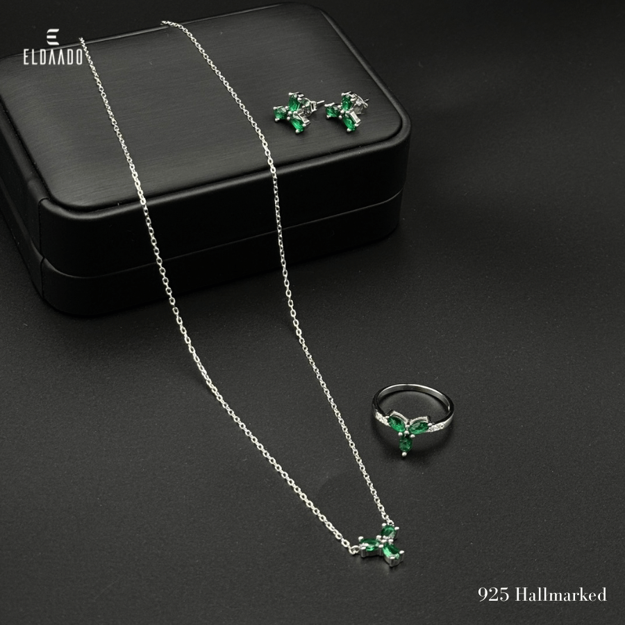 Elevate your elegance with this 925 Italian Silver Jewelry Set for Women, featuring stunning green zircone stones that bring a refreshing sparkle to your look. Expertly crafted in genuine Italian silver, this charming set includes a matching necklace, earrings, and ring—perfect for both daily wear and festive occasions.