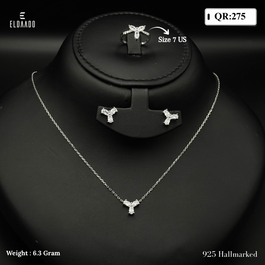 Shine with elegance every day with this 925 Italian Silver Jewelry Set for Women, beautifully crafted with shimmering zircone stones for a timeless, luxurious look. The set includes a matching necklace, earrings, and ring, designed to complement both casual and festive outfits.