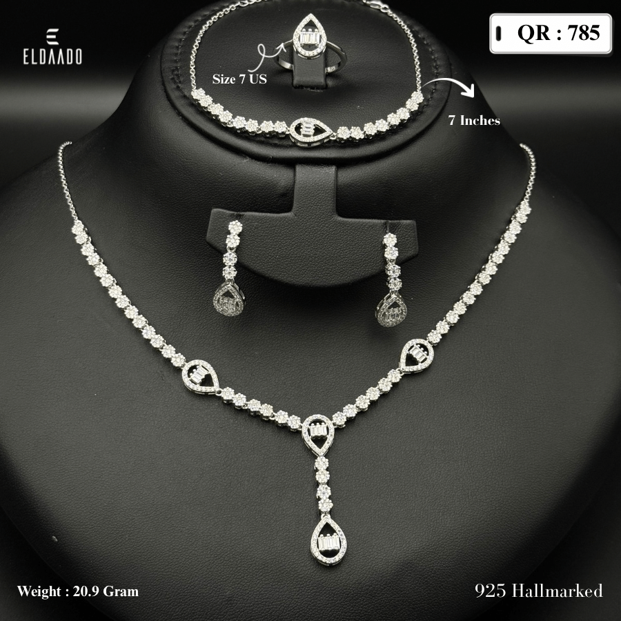 Set Includes: Necklace, earrings, and matching ring