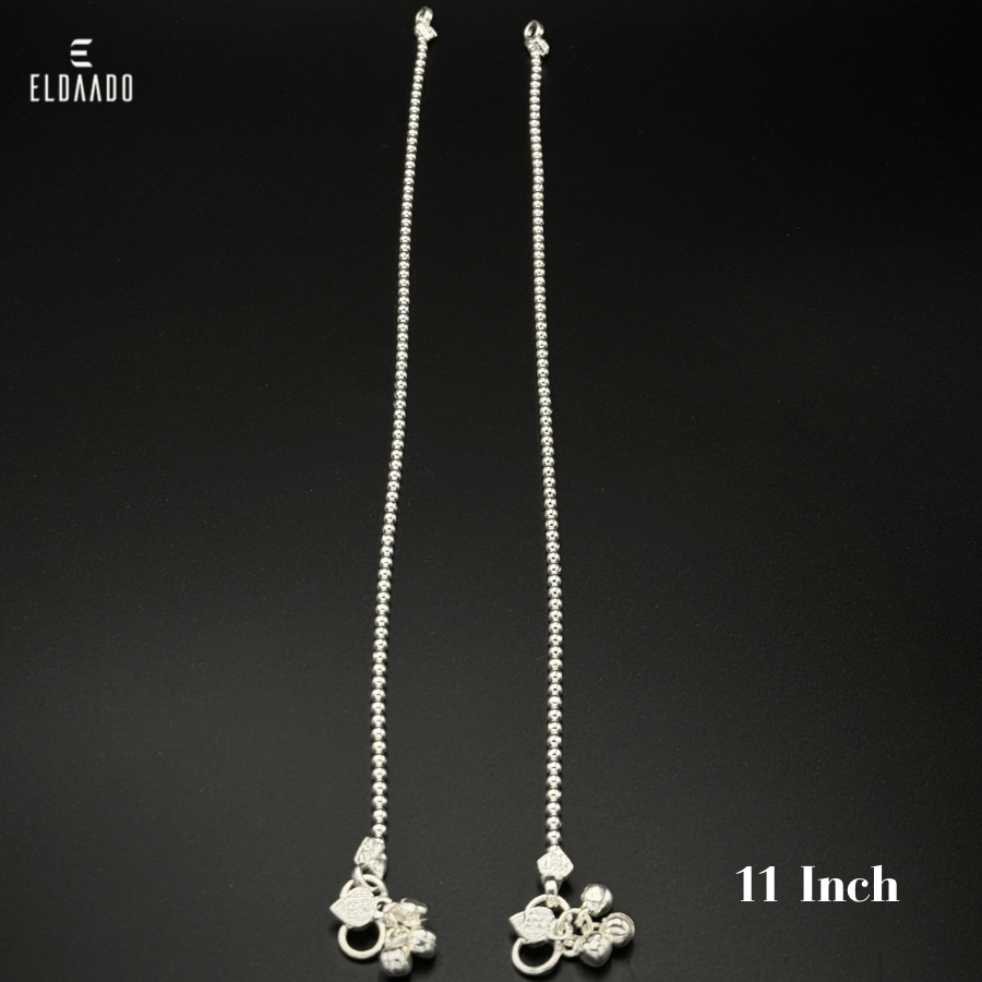 Add a modern twist to tradition with this Pure Silver Ball Chain Anklet (Payal) for Women. Crafted from high-quality pure silver, this anklet features a sleek ball chain design, offering elegance and durability. With a weight of 21.2 grams and a 11-inch length, it provides a comfortable fit for daily wear, festive occasions, or weddings. Perfect for adding a subtle charm to any outfit while maintaining the timeless appeal of a traditional payal.