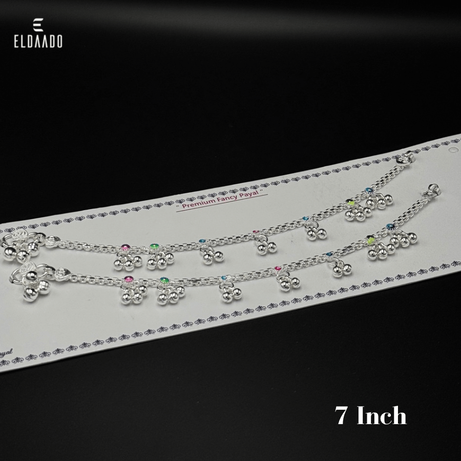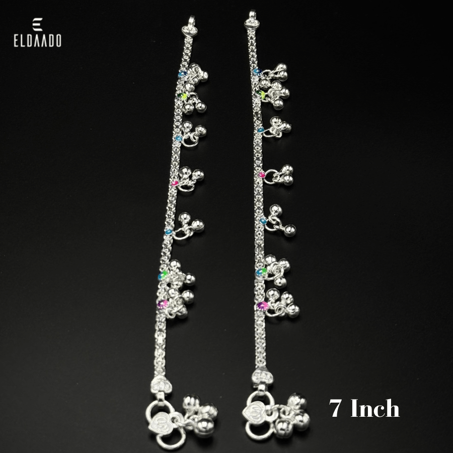Adorn your little ones with this Pure Silver Anklet (Payal) for Kids aged 4–7 years. Crafted in a traditional payal design from high-quality pure silver, it provides a lasting shine and lightweight comfort. With a weight of 27.6 grams and a 7-inch length, this anklet is perfectly sized for young children while remaining durable. Ideal for daily wear, festive occasions, or as a thoughtful gift for young girls.