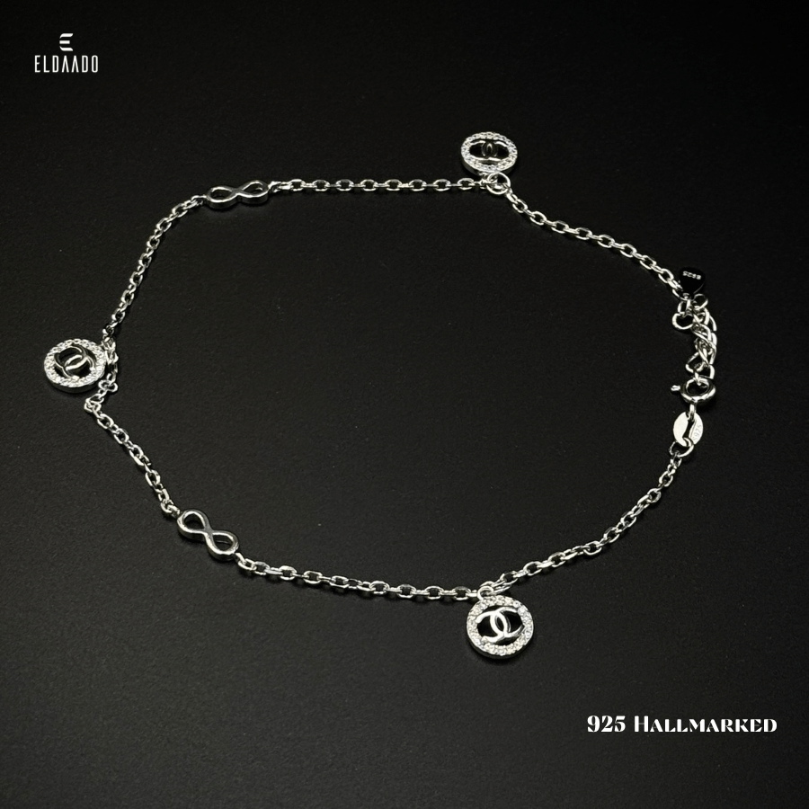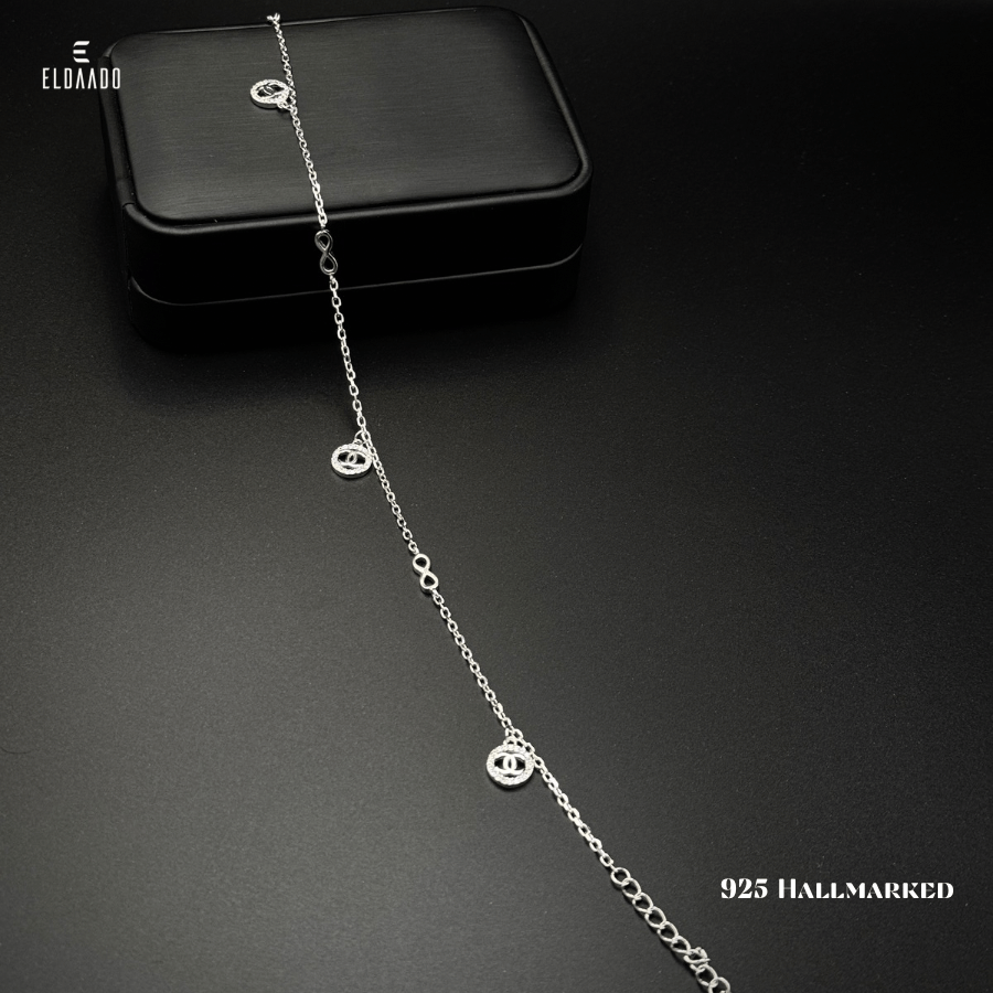 Elevate your style with this 925 Italian Silver Single Anklet, featuring a sophisticated Chanel Infinite-inspired design. With a 9.5-inch base length plus 1-inch extension, it provides a comfortable, adjustable fit, making it ideal for daily wear or special occasions.