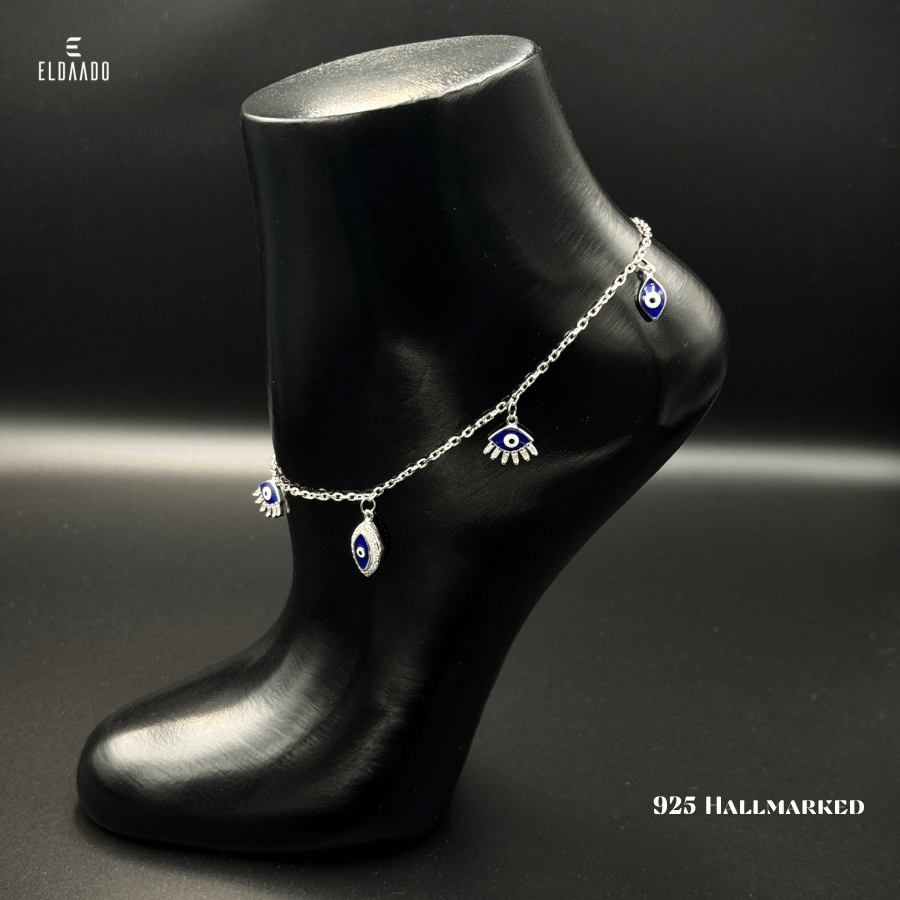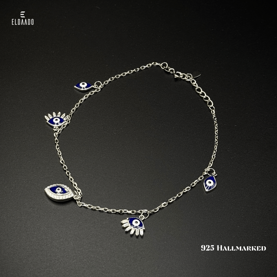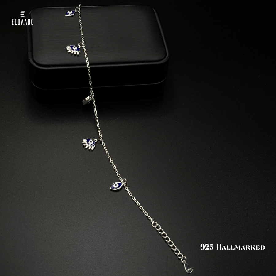 Protect and dazzle with this 925 Italian Silver Single Anklet, featuring charming hanging evil eye drops for a stylish and meaningful look. With a 9.5-inch base length plus 1-inch extension, it offers a comfortable, adjustable fit, perfect for everyday wear or special occasions.