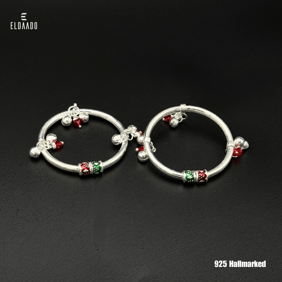 Delicately crafted from pure Italian silver, this Baby Kada Payal (18.7 Gram) is a beautiful blend of elegance and safety. With a 4 cm inner diameter, it fits comfortably on babies aged 6–12 months, offering a secure yet gentle fit. The smooth, polished design ensures comfort for everyday wear while preserving the timeless charm of traditional silver craftsmanship. A perfect keepsake or thoughtful gift for your little one.